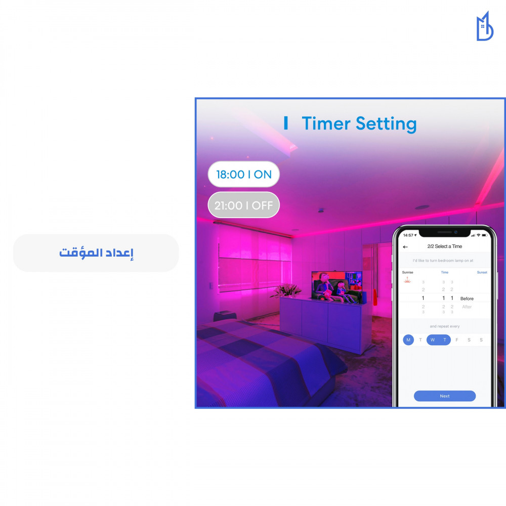 •تحكم في شريط الإضاءة من أي مكان وفي أي وقت باستخدام تطبيق Meross.