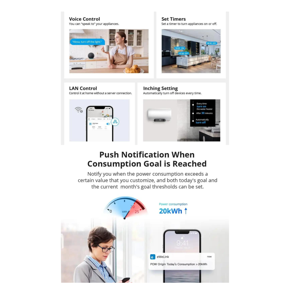 【Fully Functional】POW Origin has all the most basic functions, like App control, voice control, LAN control, timing schedule, inching setting, power on state, etc.